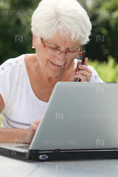 Пожилая женщина с использованием Интернет