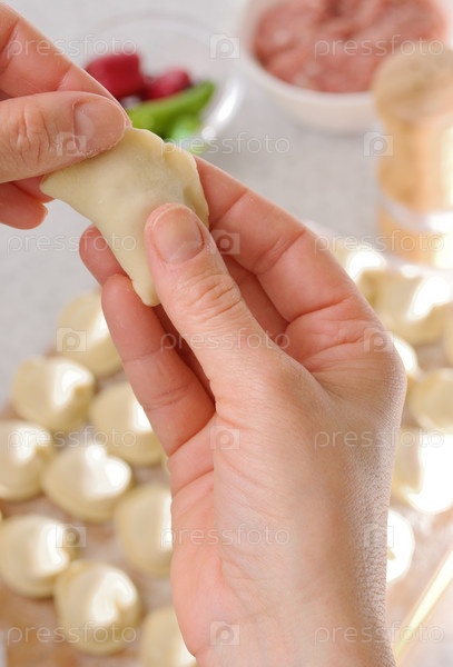 Сырые пельмени в человеческих руках