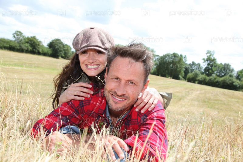 Счастливая пара, устанавливающий луг