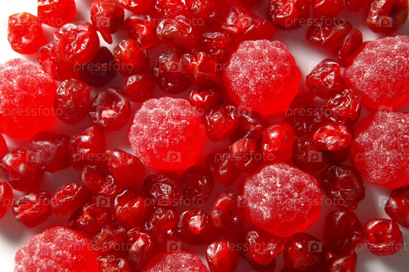 Вкусные ягоды красной вишни и конфеты клубника