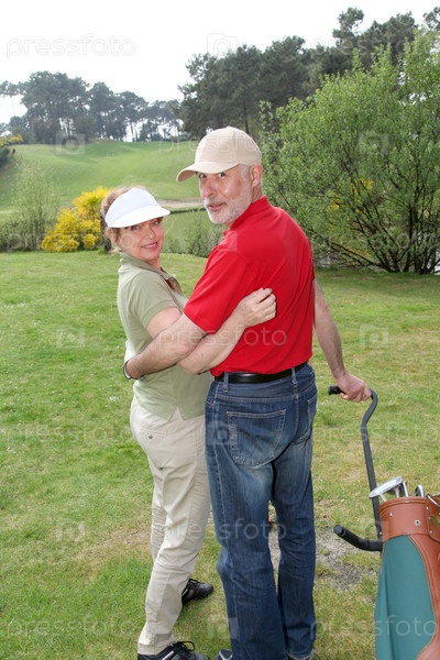 Пожилые люди на поле для гольфа