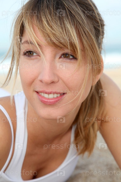 Портрет красивая блондинка женщины на пляже