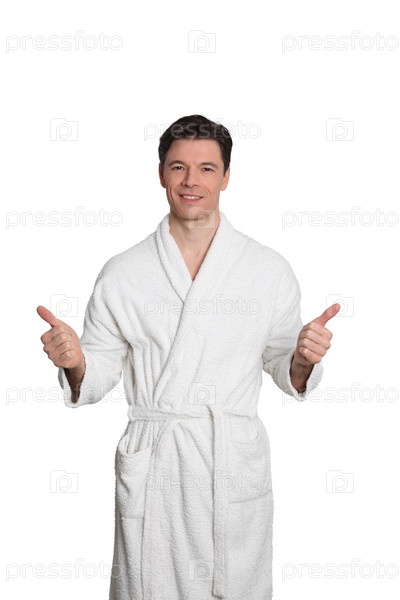 Взрослый человек в Халат, стоящий на белом фоне