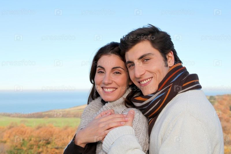 Портрет счастливая пара в осенний сезон