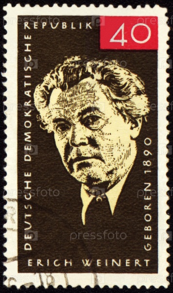 Почтовая марка ГДР 1965 года с изображением портрета немецкого поэта Эриха Вайнерта (1890-1953