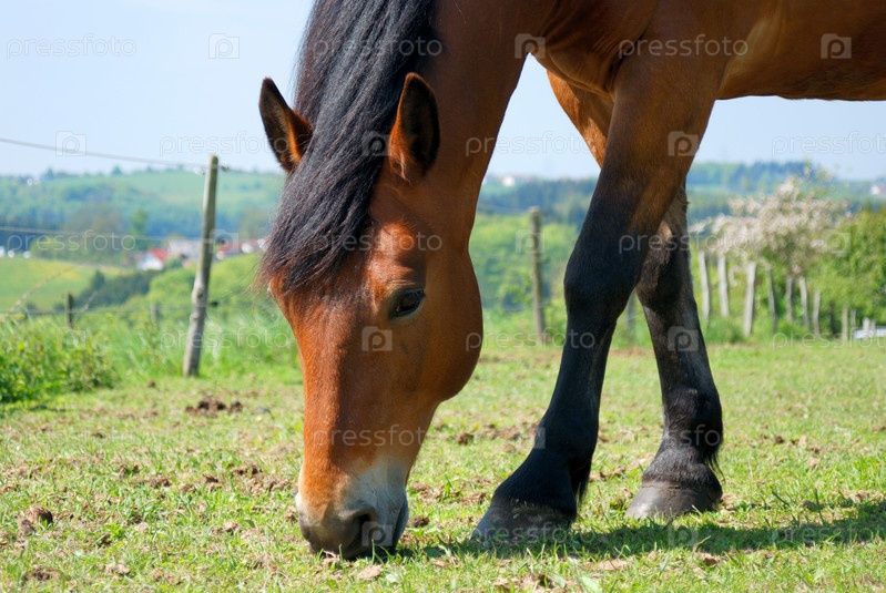 Лошади за электрическим забором. Германия
