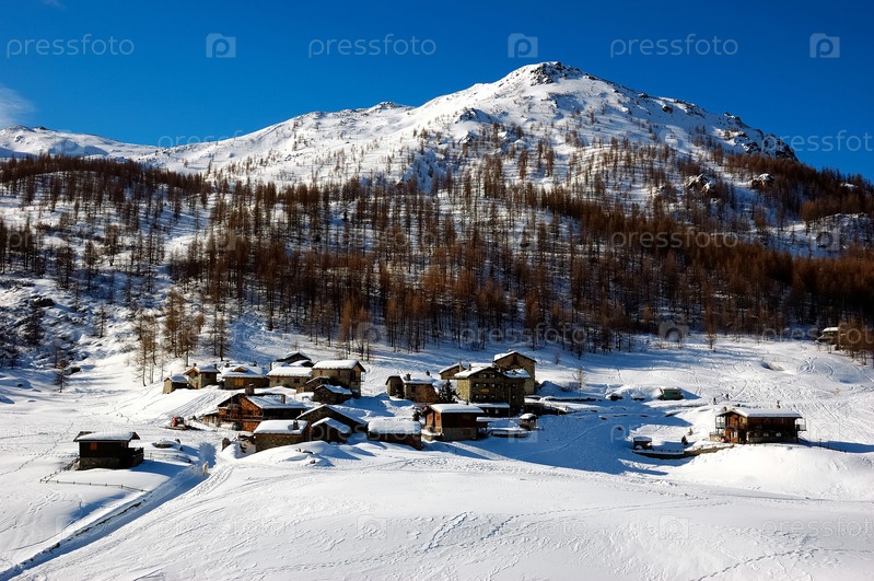 Маленькая горная деревня, покрыты снегом, зимний сезон