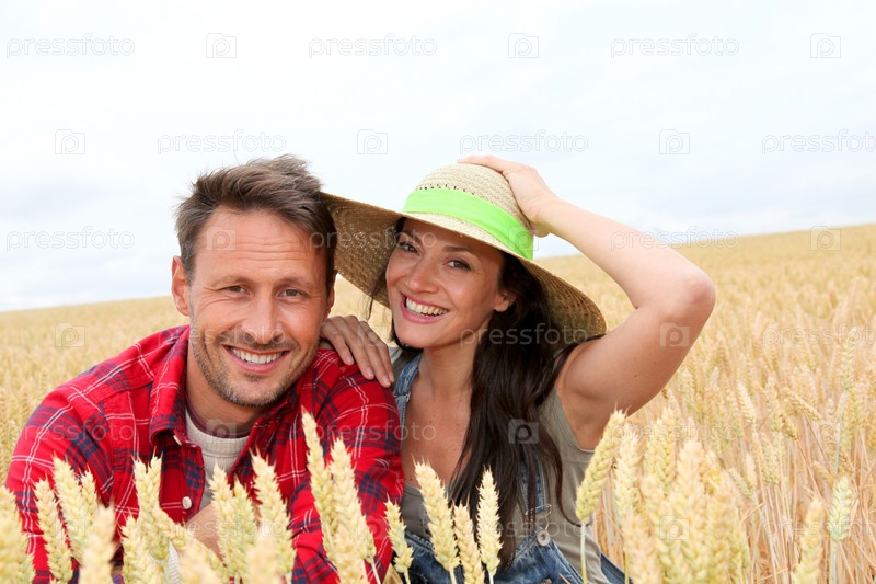 Портрет счастливая пара в поле пшеницы