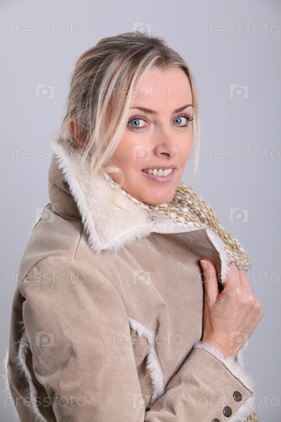 Портрет блондинка женщины носить Зимняя куртка