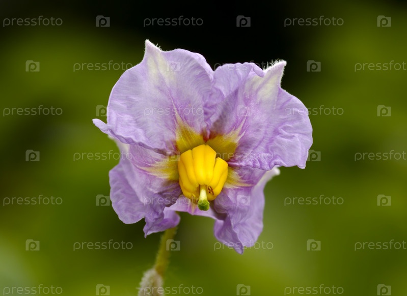 Сиреневый цветок картофеля крупным планом на зеленом фоне