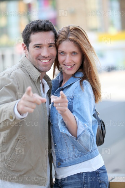 Счастливая пара с пальцы в городе