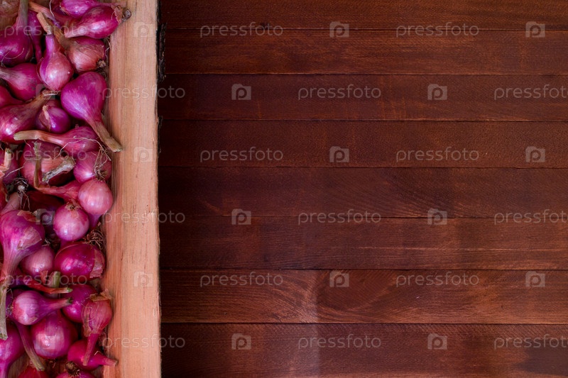 Красный лук на деревянный стол