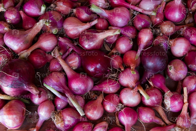 Красный лук на деревянный стол