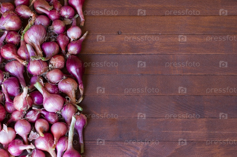 Красный лук на деревянный стол