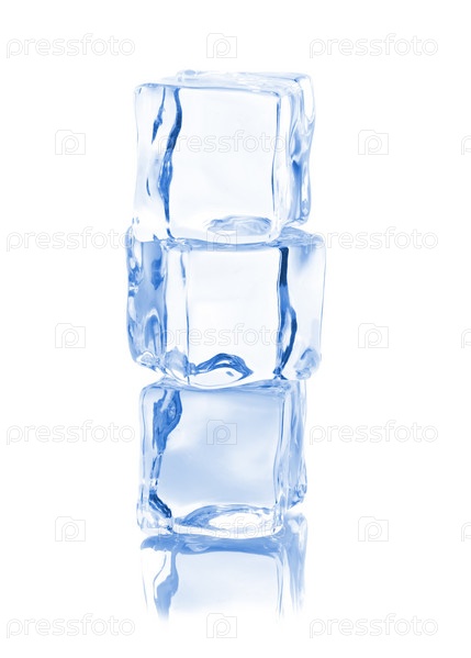Три кубика льда с отражением на белом фоне
