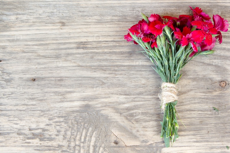 Красная гвоздика над деревянным столом с копией пространства