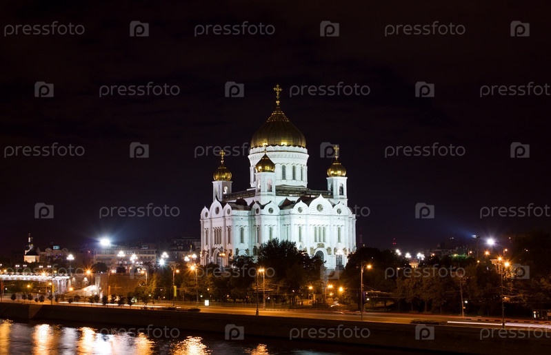 Вид на храм Христа Спасителя в ночное время