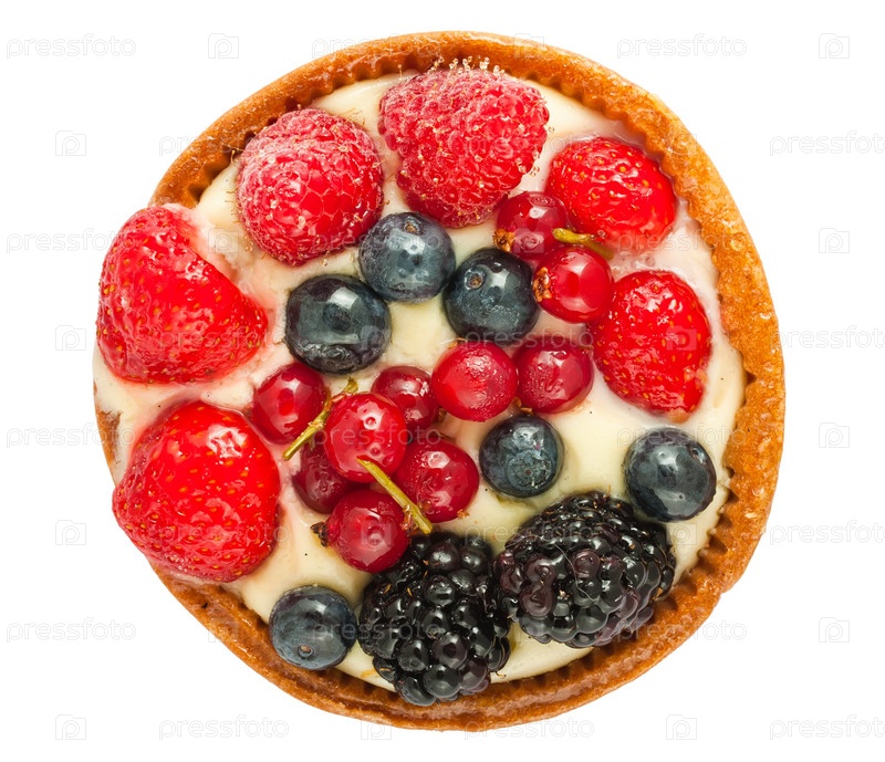 Торт со свежими ягодами на белом фоне