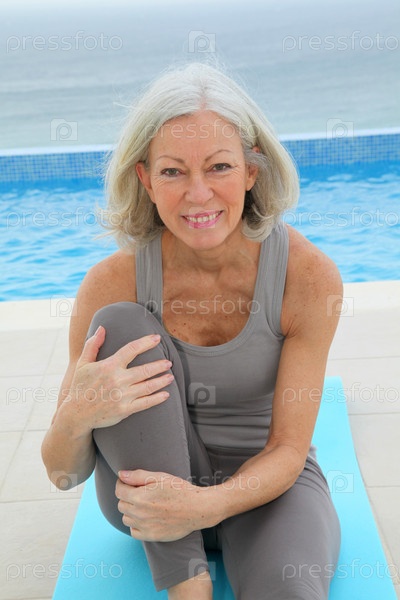 Старший женщина делая упражнения
