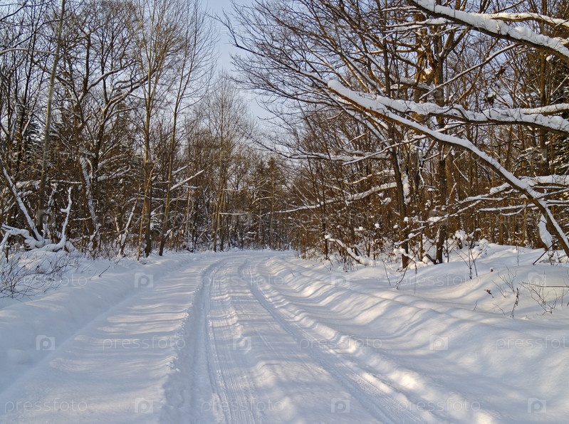 Зимний лесной пейзаж с проселочной дорогой