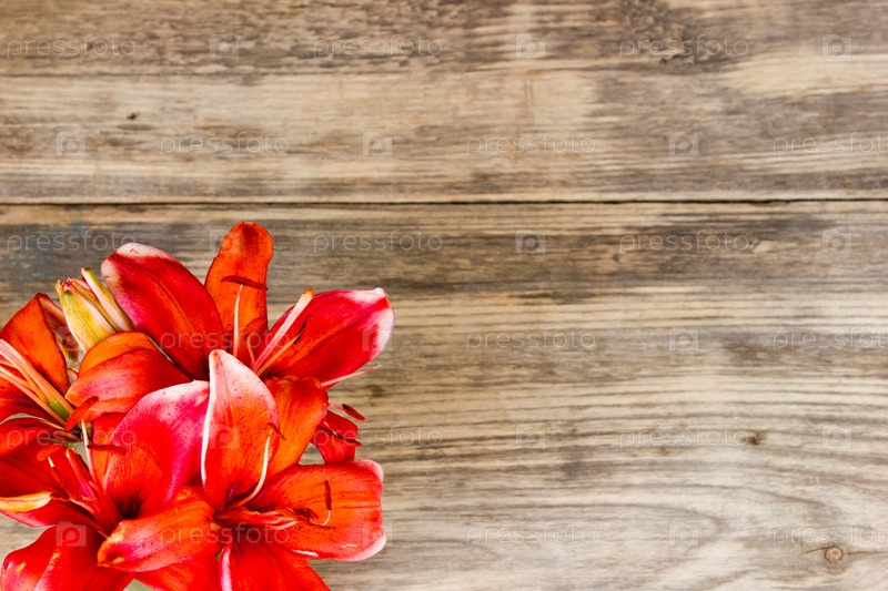 Красивые лилии на деревянных фон