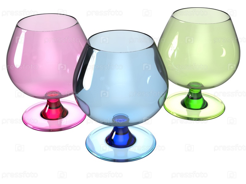 Набор бокалов рендеринга в розовый, голубой и зеленый