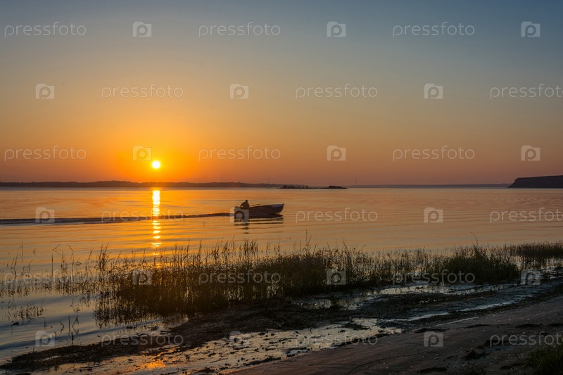 Восход солнца на берегу реки Волги