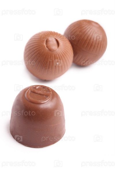 Сладкие вкусные шоколадные конфеты на белом фоне (изолированный)