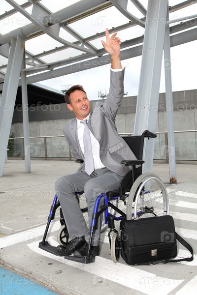 Бизнесмен в инвалидной коляске, ожидая такси