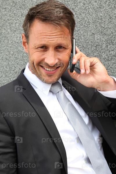 Портрет красивого бизнесмена с мобильным телефоном