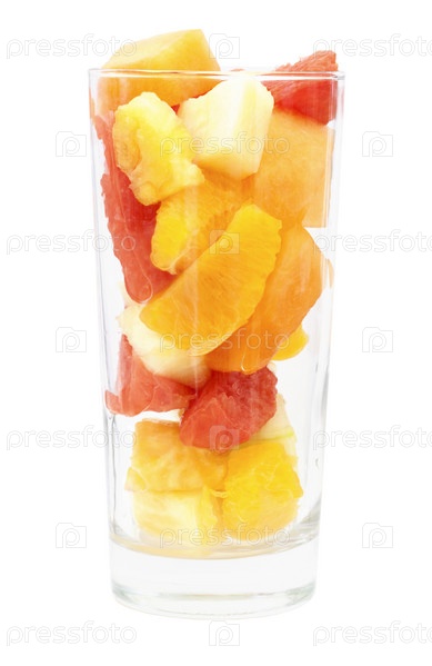 Кусочки фруктов в стакане