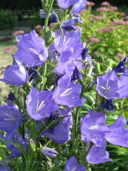 Сиреневые колокольчики на клумбе