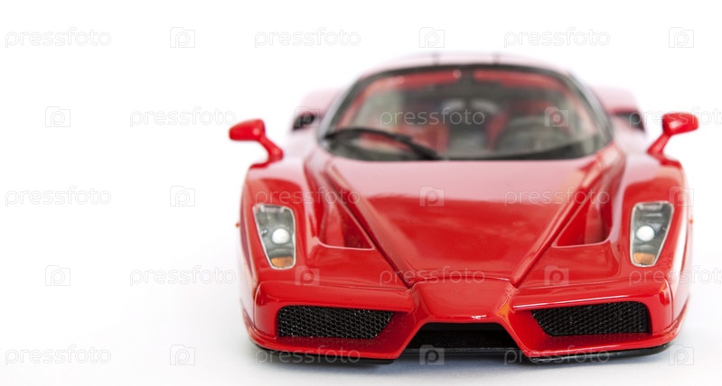 Красный игрушечный спортивный автомобиль на белом фоне