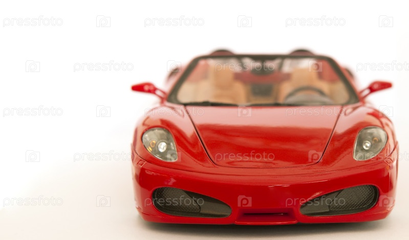 Красный игрушечный спортивный автомобиль на белом фоне