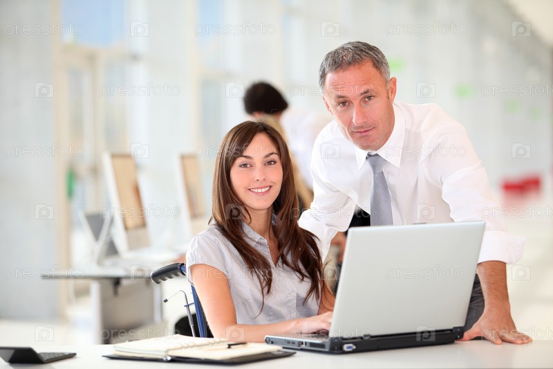 Менеджер и офисный работник в инвалидной коляске