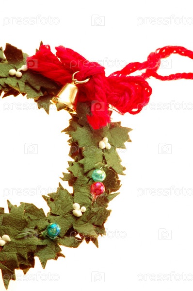 Венок украшен небольшой золотой колокольчик, изолированные на белом фоне