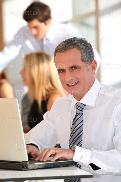 Зрелые бизнесмен, работы на ноутбуке