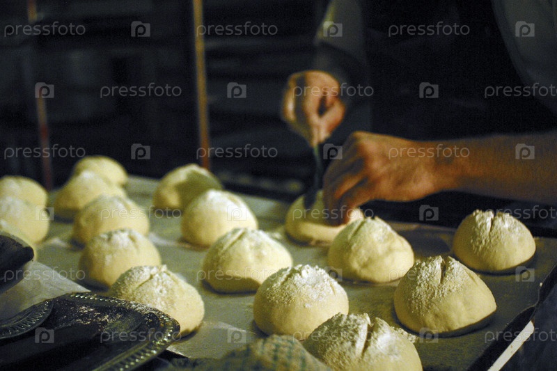 Бейкер резки в Хлеб булочки