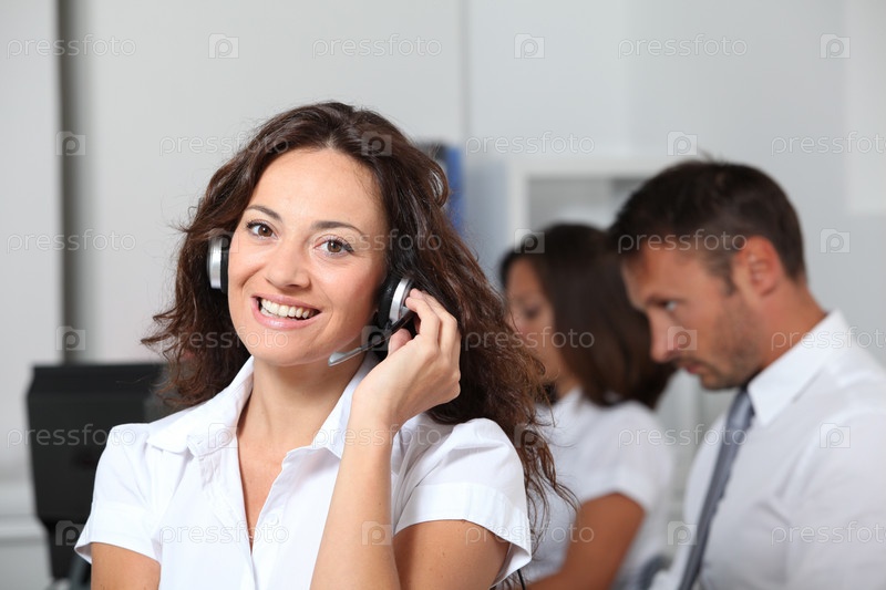 Красивая женщина с гарнитурой