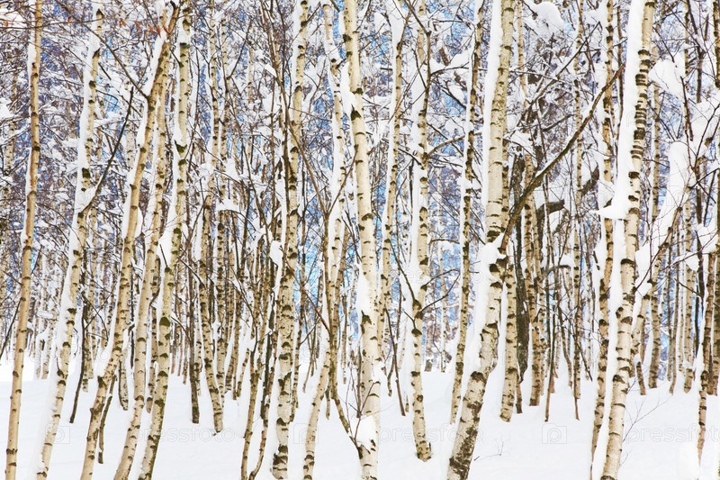 Заснеженном лесу береза, зимний сезон
