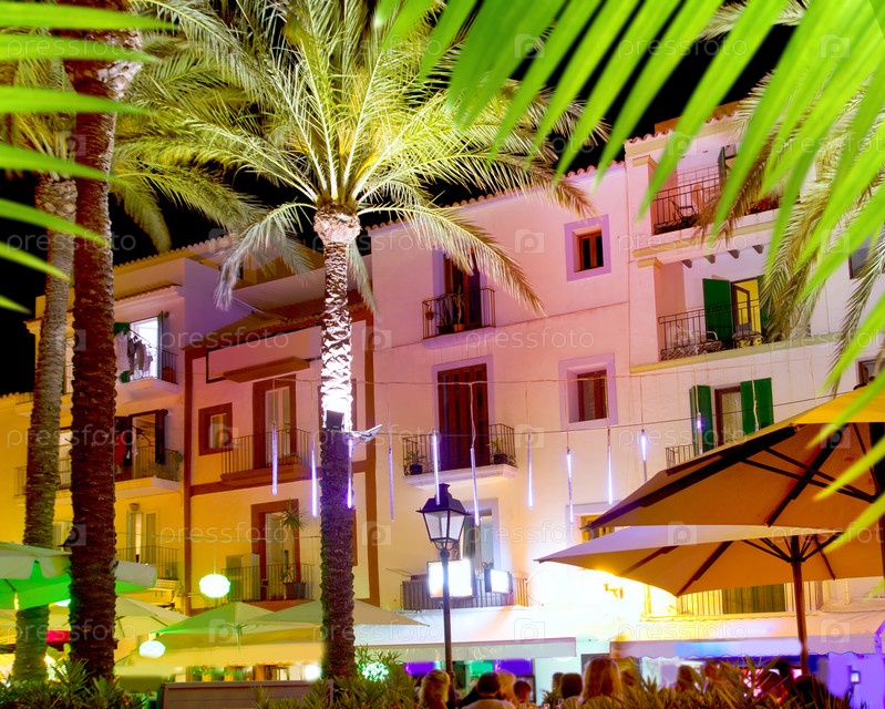 Ночная жизнь острова Ибица в Ивисе город белого дома и пальмовых деревьев