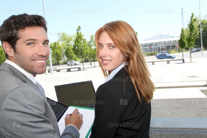 Деловые партнеры, встреча за пределами офиса