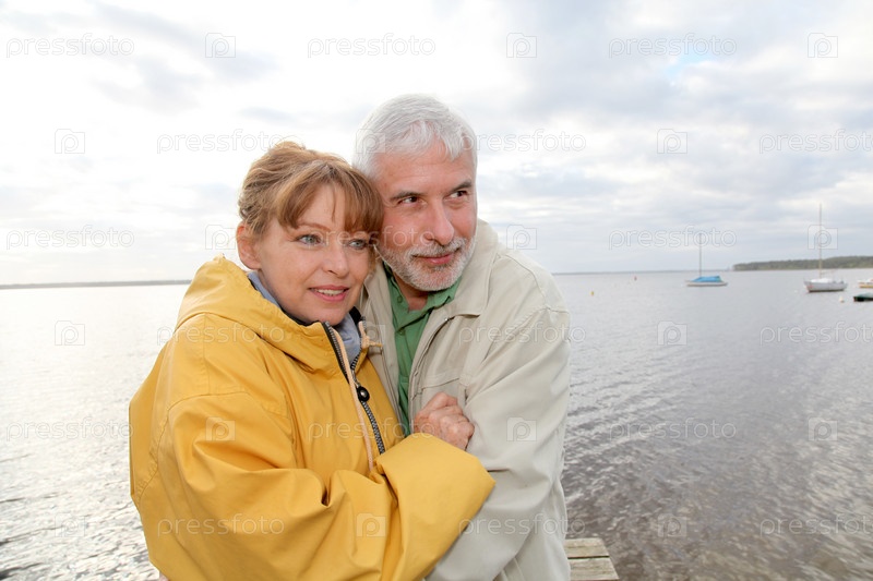 Портрет пожилой пары на берегу озера