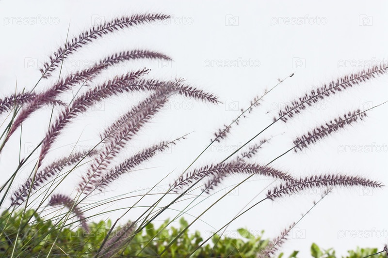 Колючки и зеленая трава видны на светлом фоне