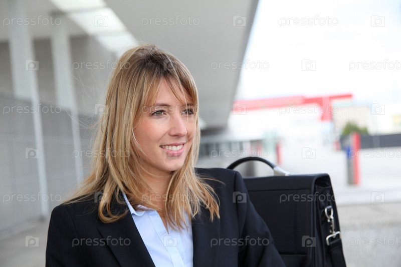 Портрет бизнесвумен, ждал снаружи здания