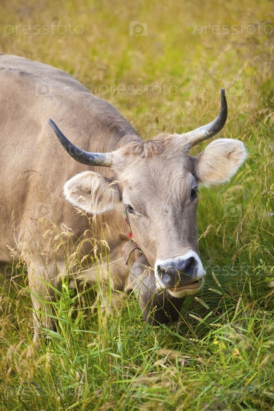 Швейцарский корова на альпийском лугу