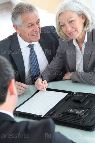 Пожилые супружеские пары, подписания договора покупки дома
