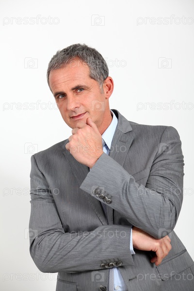 Портрет красивый бизнесмен с рукой на подбородке