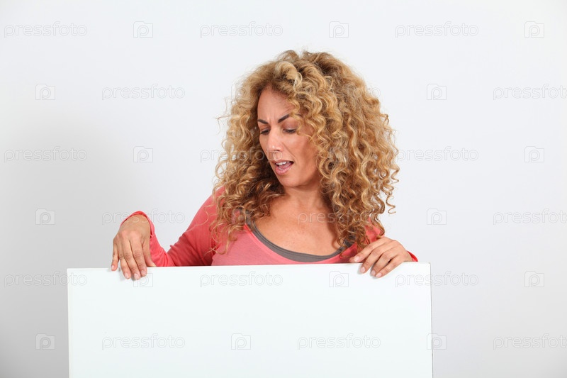 Смешная блондинка женщина Холдинг доска