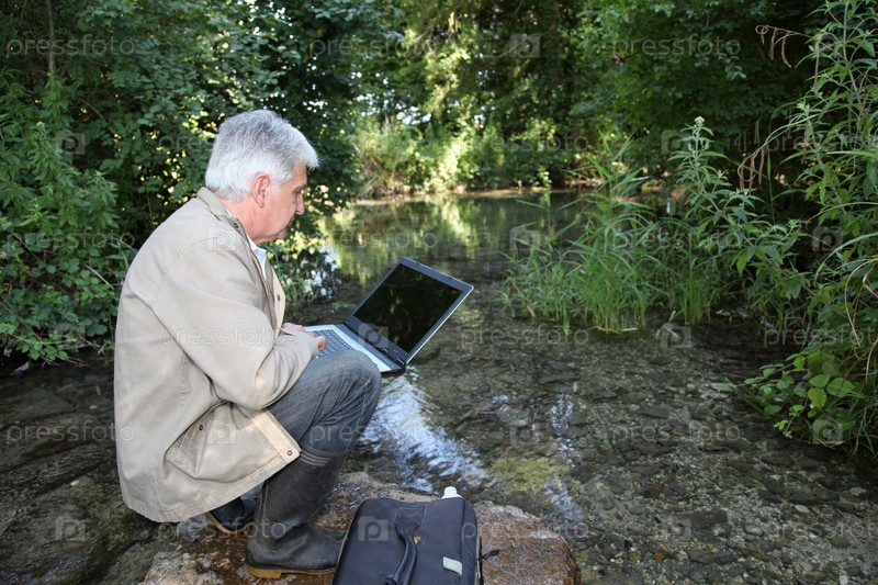 Биолог тестирования качества потока воды